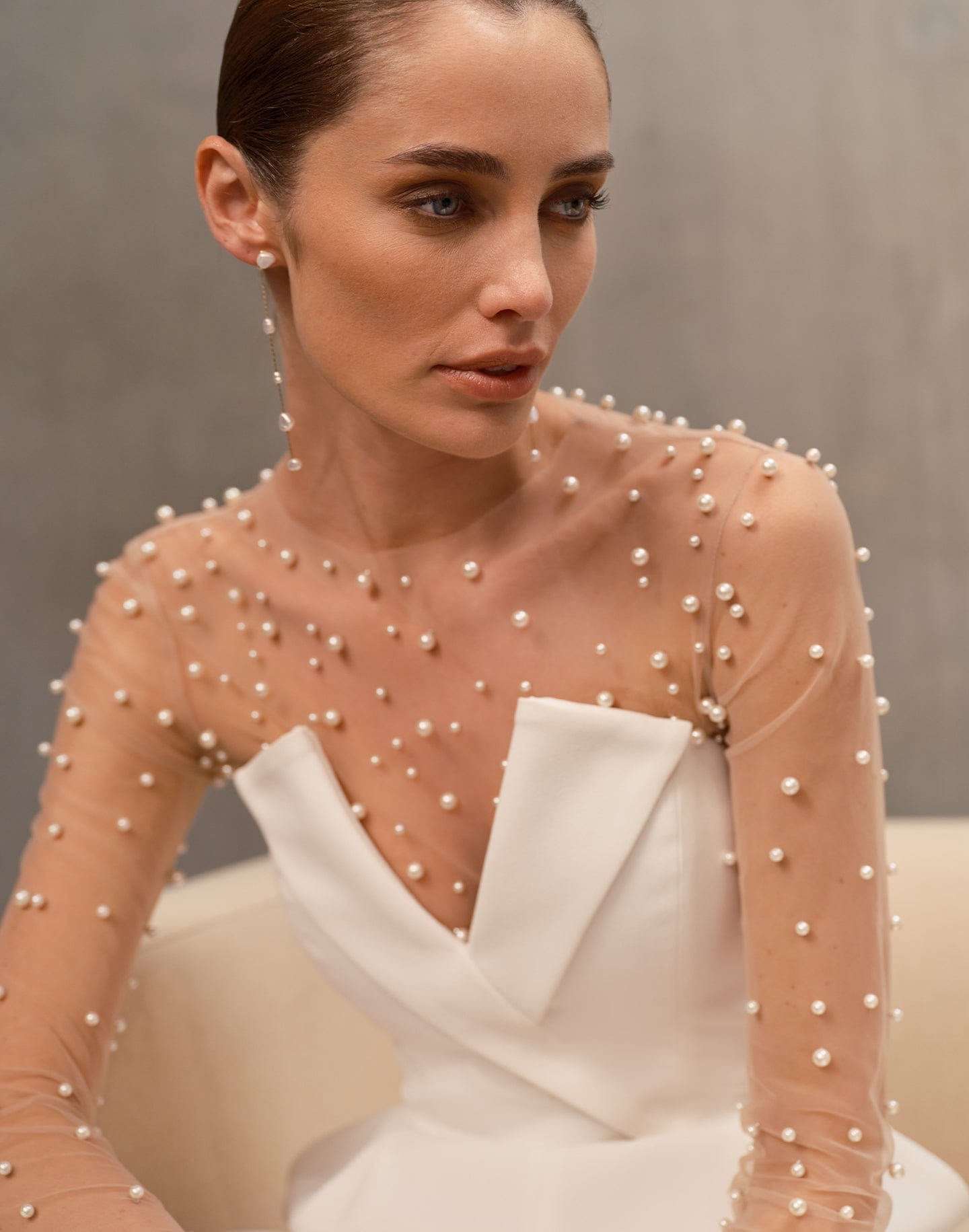 This pearl-embellished mesh bodysuit is a perfect example - romantic, delicate, and incredibly effective. Worn under a simple dress or teamed with a jumpsuit worn open at the neckline, it adds a festive edge while still feeling refined.