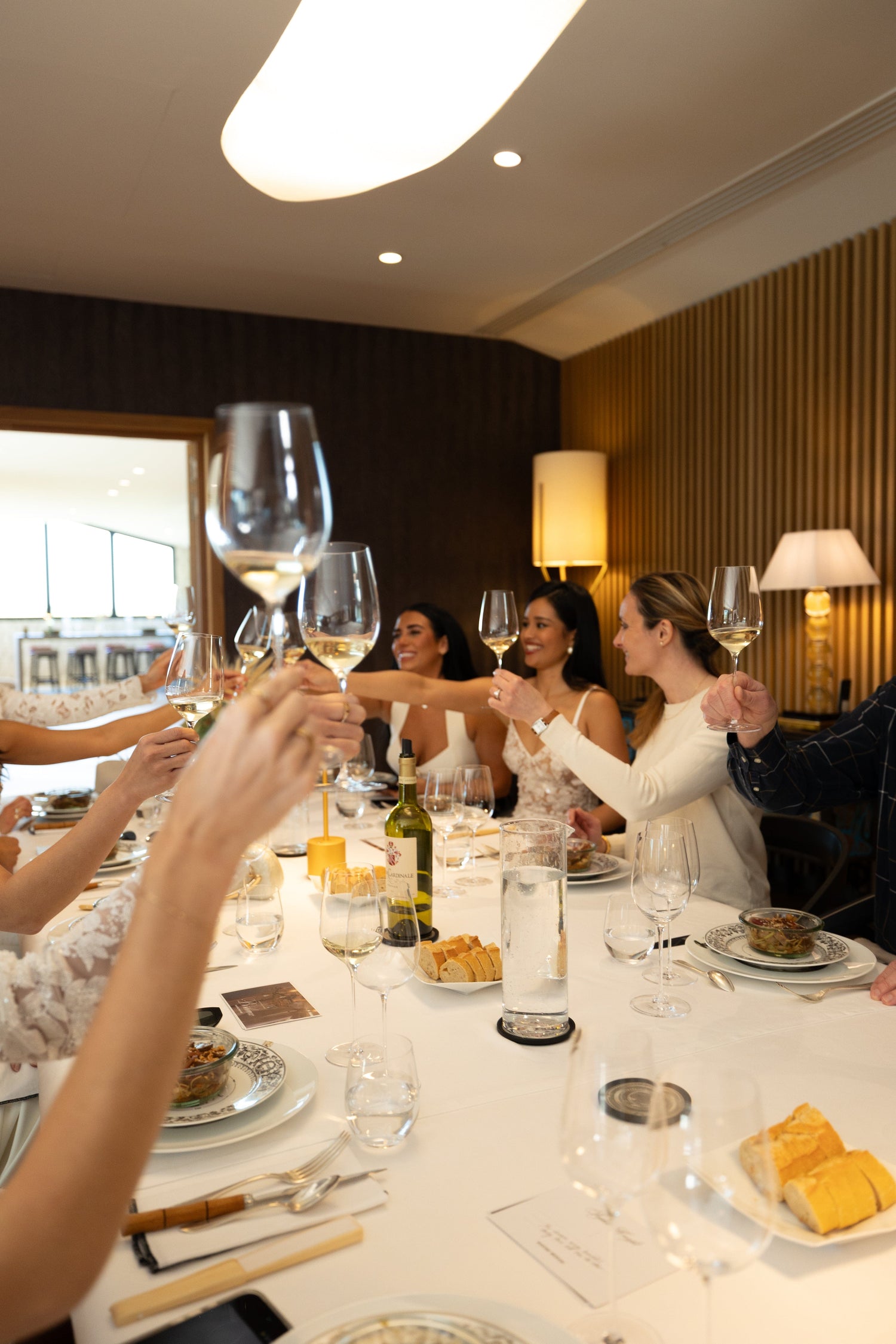 After lunch, guests put on their embroidered MERABI aprons and enjoyed a cooking demonstration led by the head chef, discovering some of the flavours and techniques that make French cuisine so special. The girls loved this experience, which felt reminiscent of a wedding menu tasting; sampling dishes, discovering new flavours, and imagining how each might appear on their big day. In the evening, everyone slipped into their second MERABI look, ready for a three-course dinner: wild sea bream tartare to start, beef in cider for the main, and a decadent chocolate fondant to finish. The night was spent sharing wedding plans and toasting to an exciting new chapter.