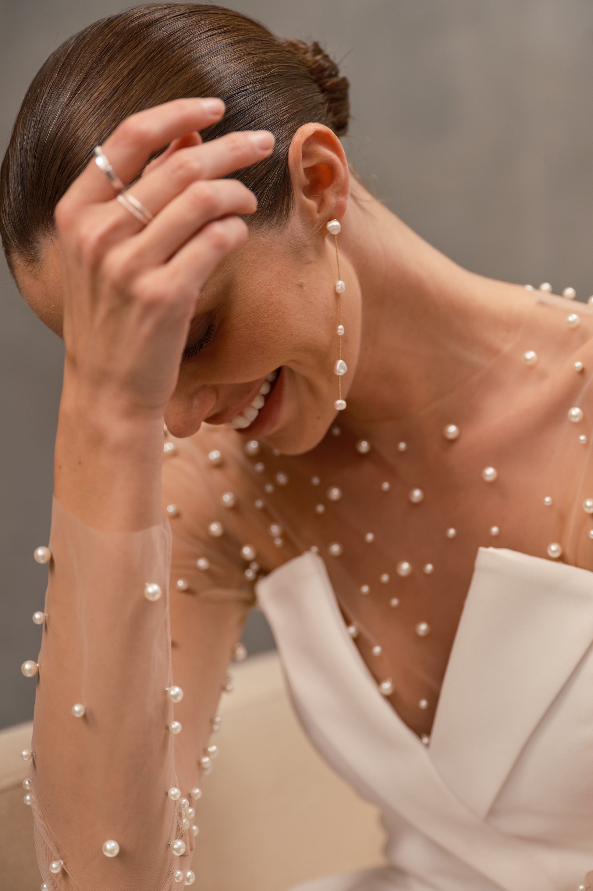 HETTIE is a romantic, delicate pearl-embellished bodysuit, crafted from mesh with a Lycra deep heart-shaped neckline lining and a popper closure.