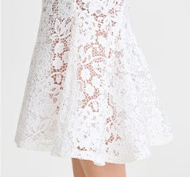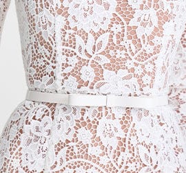 Unapologetically feminine, the JULIETTE White Dress is crafted from sheer lace fabrication. Designed with a structured bodice and a flared midi hemline, she creates a seamless, elegant silhouette, made for bridal moments and beyond. Elevated with a high neckline, long sleeves with scalloped details, and shoulder pads. Finished with a detachable high shine bow belt for adaptable elegance. JULIETTE comes with a separate nude slip that can be worn for optional coverage, complete with a concealed zip closure – available in light or dark nude.
