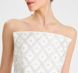 Adorned with all-over geometric beaded and pearl embellishment